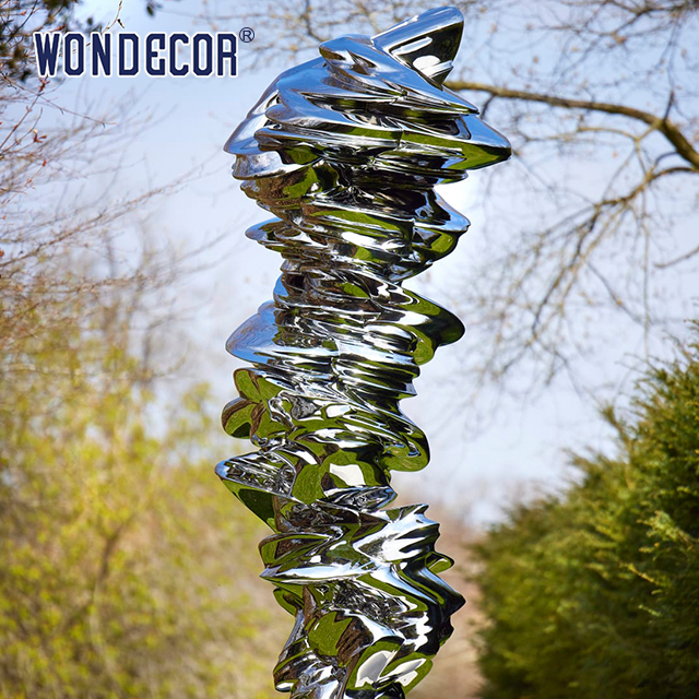 Les sculptures en acier inoxydable miroir sont fabriquées par forgeage, polissage et polissage de l'acier inoxydable, ce qui les rend idéales pour la décoration dans des endroits tels que les jardins, les parcs, les places, etc.