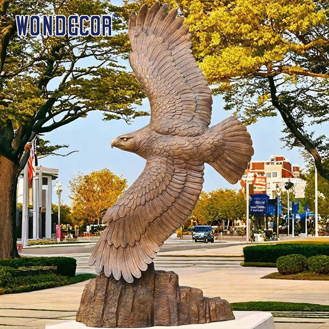 Les sculptures d'aigle servent d'éléments décoratifs pour les places des parcs et les entrées des entreprises,améliorer l'atmosphère artistique de l'espace tout en brisant la monotonie des environnements statiques grâce à une modélisation dynamiqueSa taille peut être personnalisée en fonction de la scène, allant de petits ornements à de grands repères.