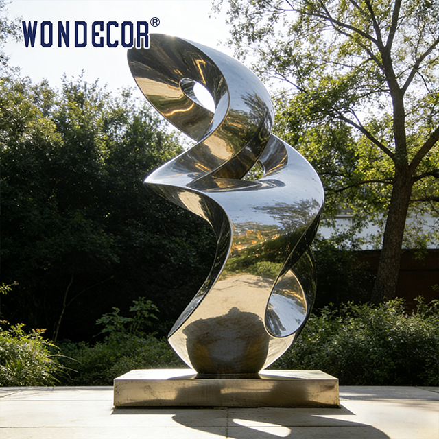 Les sculptures en acier inoxydable miroir sont fabriquées à l'aide de procédés de forgeage, de polissage et de finition de l'acier inoxydable, ce qui les rend idéales pour les applications décoratives dans les jardins, les parcs, les places et divers autres environnements.