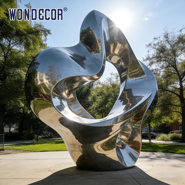 Cette sculpture en acier inoxydable miroir est fabriquée à l'aide de procédés de forgeage, de polissage et de finition avancés, ce qui la rend idéale pour des applications décoratives dans les jardins, les parcs, les places,et divers environnements extérieurs.